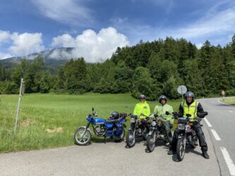 We zijn net teruggekeerd met 4 Zündapps en een Honda uit de Oostenrijkse bergen. De GTS50 staat weer in mijn garage en is nog vies van de regen en de modder op de laatste dag, na vier dagen te hebben gereden over de steile wegen van Vorarlberg. En wat hebben we genoten.
