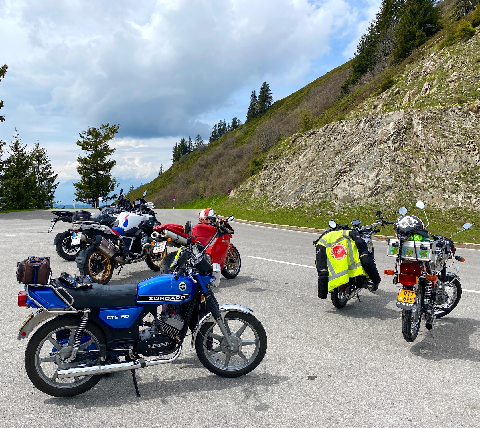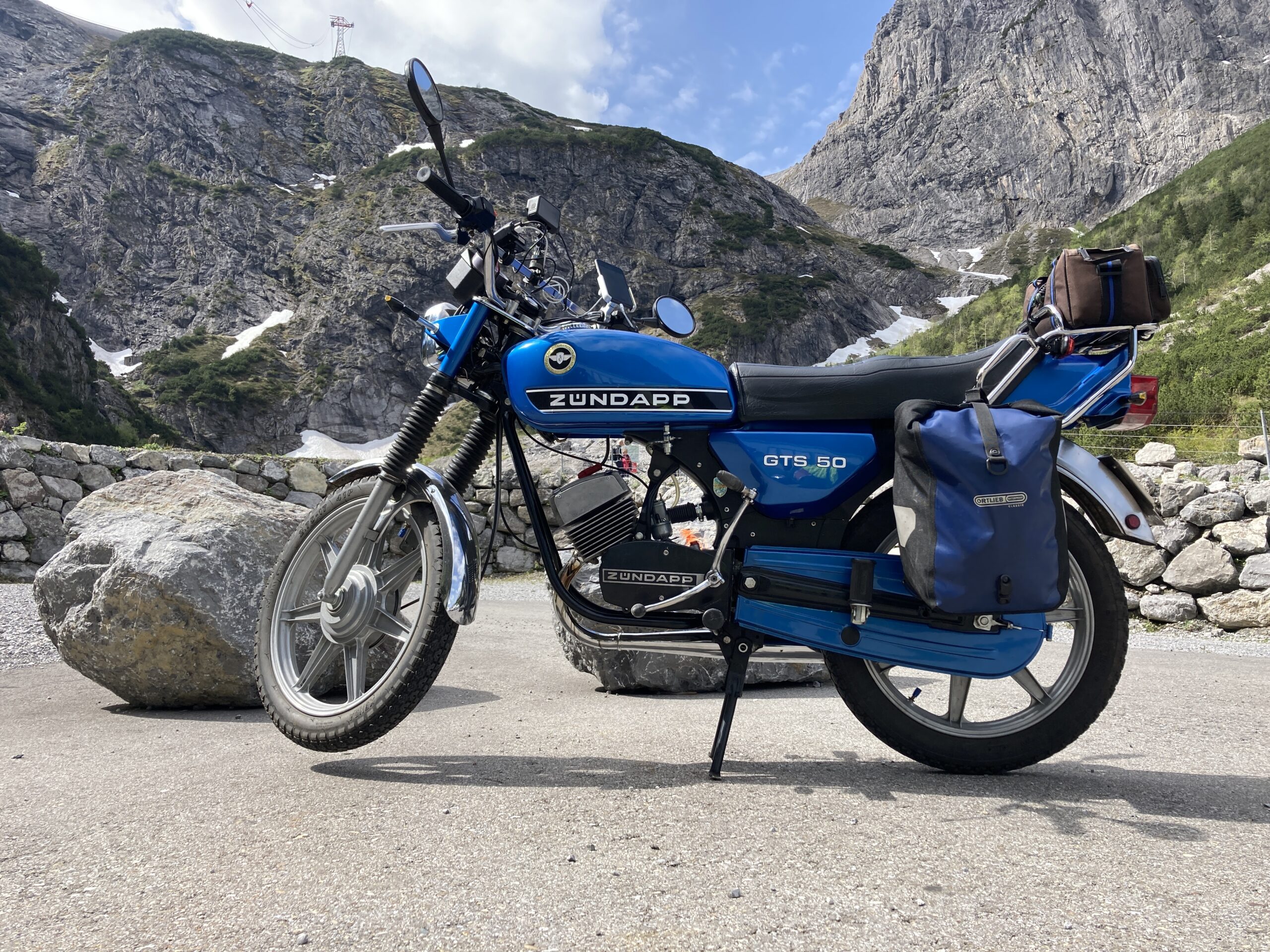 We zijn net teruggekeerd met 4 Zündapps en een Honda uit de Oostenrijkse bergen. De GTS50 staat weer in mijn garage en is nog vies van de regen en de modder op de laatste dag, na vier dagen te hebben gereden over de steile wegen van Vorarlberg. En wat hebben we genoten.