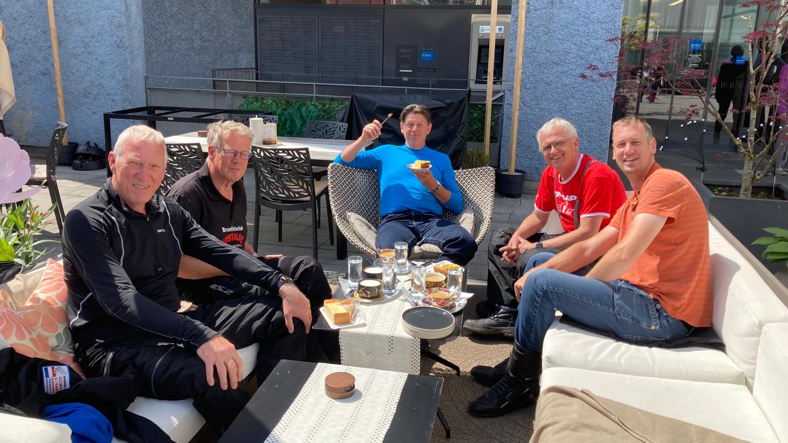 De onderlinge kameraadschap tijdens deze dagen was weer geweldig; we kennen elkaar zo langzamerhand door en door en dat is ook tijdens het rijden goed te merken. Iedereen let goed op de ander, rijdt niet in de weg, geen vreemde capriolen en als iemand pech heeft, zoals ik aan het begin, wordt het gezamenlijk opgelost. Mijn grote dank aan Fré, Wim, Wybe en Stefan; ik heb het prima naar mijn zin gehad.