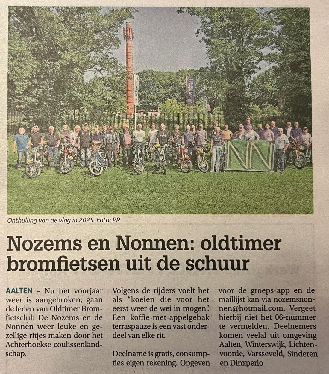 AALTEN – Al meer dan 10 jaar lang is de Oost-Achterhoek een unieke club met een al even unieke activiteit rijk: “De Nozems en de Nonnen” maken met hun oldtimer bromfietsen toertochten door de Achterhoek. “Gin brommers kieken, moar d’r van genieten” is het credo.