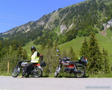 Zes leden van Bromfiets Club Nostalgie uit Gelderland hebben van 30 mei t/m 8 juni 2012 een rit gemaakt van Nederland naar Zwitserland en weer terug. De route door Duitsland werd meestal bereden over de Duitse Bundesstrassen. Dat ging prima.