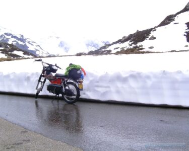 De tweetakt motor kreeg wel last van de ijle lucht op grote hoogtes. Met name op de Brunigpas, waar het ook nog wat mistig was en de Klausenpass was er een tekort aan zuurstof. Soms ging de brommer proestend naar boven. Sneller dan zo’n 20 km/u ging je echt niet naar boven. Hij kreeg minder lucht, dan zou je denken; monteer een verstelbare sproeier en stel deze af op de ijlere lucht. Maar dat is riskant, want de motor krijgt het al voor zijn kiezen en minder brandstof betekent ook minder koeling van de zuiger.